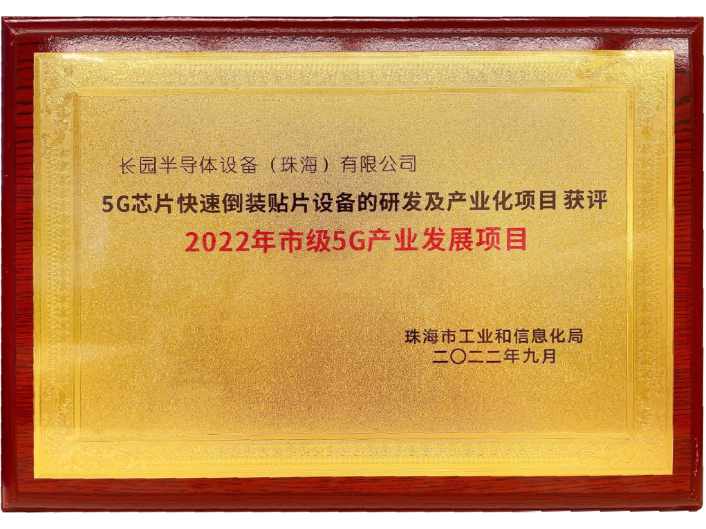 为支持5G网络技术在经济发展、社会生活、公共服务和信息消费等领域创新应用,促进我市5G行业加快发展,珠海市工业和信息化局开展了“2022年度珠海市促进5G产业发展项目”,公海jcjc710半导体设备(珠海)有限公司(以下简称“公海jcjc710半导体设备”)作为芯片封装设备领域的优秀供应商,积极参与了5G产业化的评选,凭借技术优势入围获评。