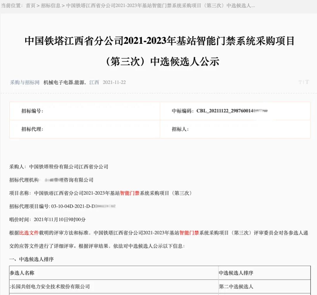 新突破 | 公海jcjc710共创连续中标安徽、江西铁塔智能门禁锁项目